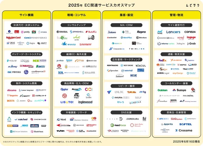 動画制作サービス「ムビサク」を提供するアルファノート株式会社が作成した2025年版「EC関連サービスカオスマップ」にFutureRaysが掲載されました。