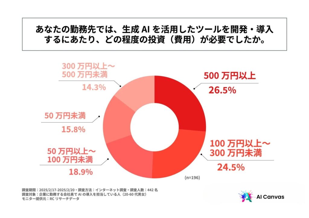 生成AIを活用したツールを開発・導入するにあたり必要だった費用、最も多い回答は「500万円以上」